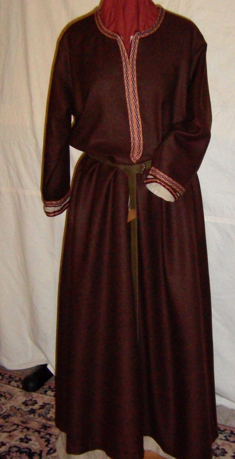 Dieses Kleid zeigt die schlichte fränkische Tracht, wie sie von Karl dem Großen bevorzugt wurde, nicht die prunkvolle byzantinische Kleidung.